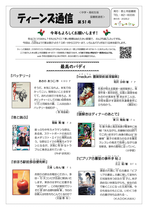 2026年 ティーンズ通信2026年冬号.pdf 2025年 ティーンズ通信2025年秋号.pdf ティーンズ通信2025年夏号.pdf ティーンズ通信2025年春号.pdf ティーンズ通信2025年冬号.pdf 2024年 ティーンズ通信2024年秋号.pdf ティーンズ通信2024年夏号.pdf ティーンズ通信2024年春号.pdf